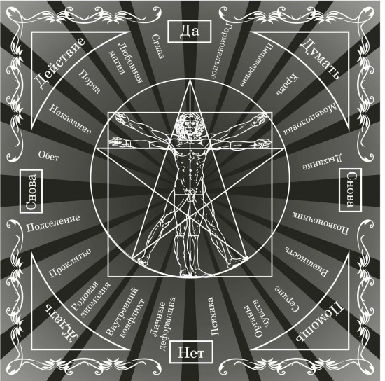 Центральная фигура может использоваться для чакровой диагностики, хотя для этого есть более удобная таблица, или скатерть, – чакровая, о которой поговорим далее.