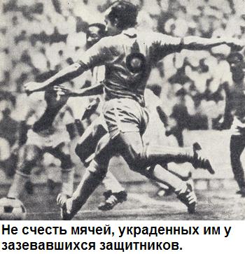Из четырех групп, объединивших шестнадцать команд – участниц мексиканского чемпионата, третья была, безусловно, самой сильной. Анализируя шансы финалистов, восторженные дилетанты и деловитые специалисты пяти континентов многозначительно покачивали головами. Англия! Бразилия! Чехословакия! И Румыния, доказавшая в последние годы, что может преподнести сюрприз любому фавориту. В жарких спорах рождались противоречивые прогнозы и взаимно исключающие друг друга версии. Одни категорически утверждали, что именно из третьей группы выйдут два участника финального матча, другие, скептически поджимая губы, высказывали предположение, что взаимно истощив свои силы в этой борьбе не на жизнь, а на смерть, гераклы третьей группы, не найдут сил даже для того, чтобы перешагнуть четвертьфинальную ступень. И никто из спорщиков – «ни юноши во цвете лет, едва увидевшие свет, ни закаленные судьбой бойцы с седою головой» – не смог предположить, что сборная Бразилии выберется из этой кровавой мясорубки с таким впечатляющим результатом, с таким солидным отрывом от своих конкурентов. Шесть очков из шести возможных! Три победы в трех матчах при соотношении мячей 8:3!… В то время как занявшие второе место англичане вышли в четвертьфинал с более чем скромным голевым балансом – 2:1 в трех матчах. Таким же, как у команды Уругвая.