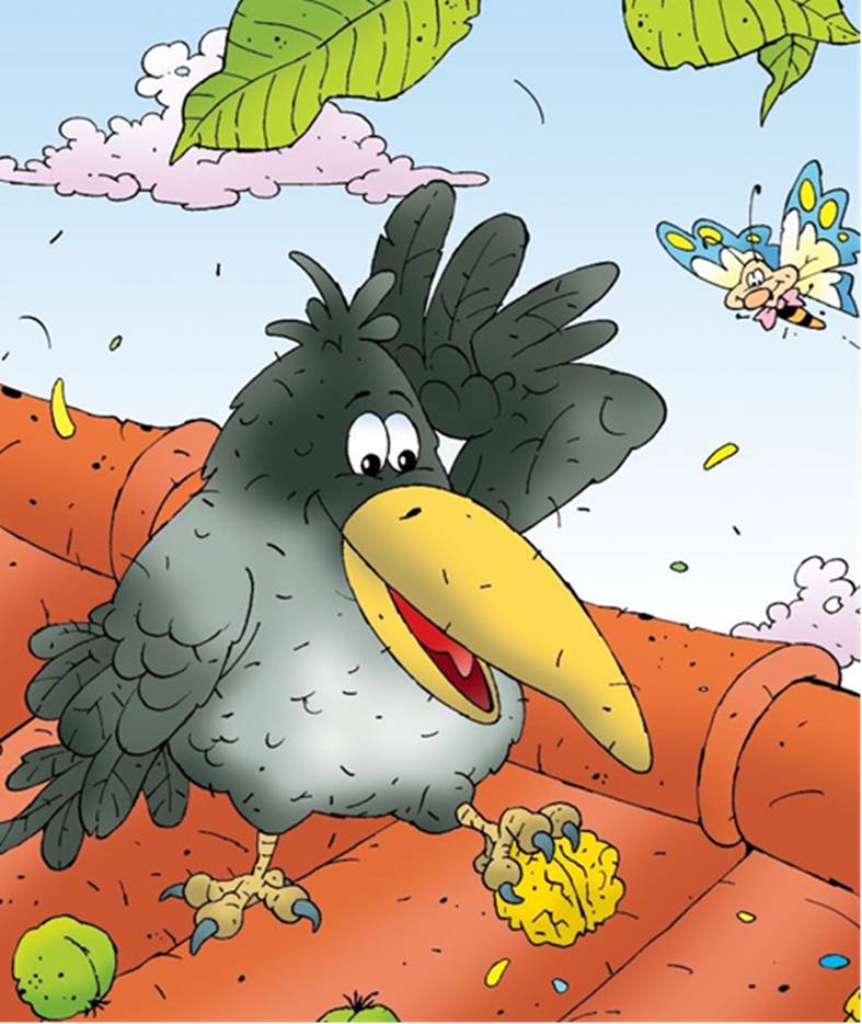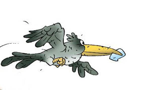 Ворона услышала про карман, но ничего не ответила, потому, что держала в клюве еще и блестящее стеклышко. Поэтому она просто полетела дальше. Видимо, по своим делам торопилась.