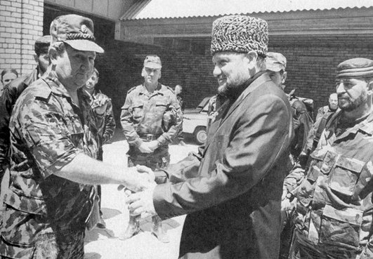 С одним из реальных претендентов на должность Президента Чеченской республики — А. Кадыровым. Село Центорой, сентябрь 2002 г.