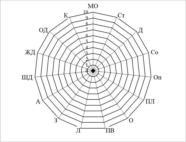 Рис. 7. Условные обозначения лепестковой диаграммы, характеризующей распространение инвазионных видов в различных типах экотопов региона: