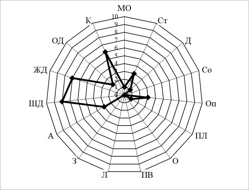 Рис. 10. Распространение Arrhenatherum elatius в различных типах экотопов