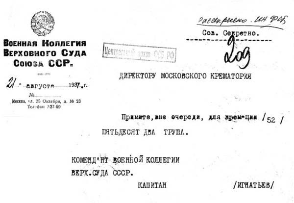 Документы Военной коллегии Верховного суда СССР от 21 и 22 августа 1937 г.