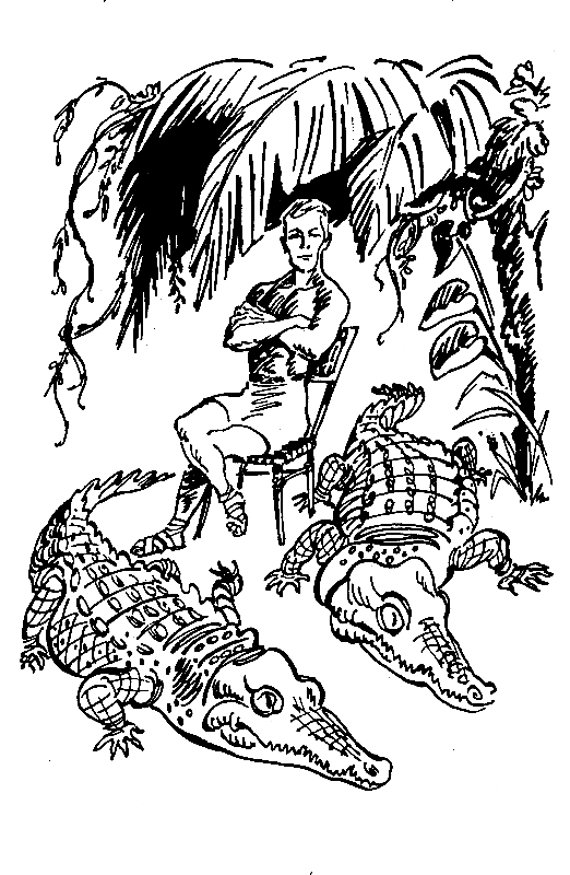 Человек этот был мускулист и, по-видимому, высок ростом, и у его ног лежали два самых больших и, кажется, самых свирепых крокодила.