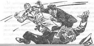 Будучи занят Майком, я не слишком-то обращал внимание на то, что творится вокруг. Но банда французских моряков, возжелавших было броситься на меня, остановилась, завидев в руке Тома Роуча револьвер. Том — боец серьезный, к дурачествам не расположенный.