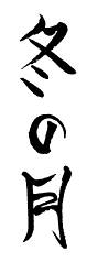 «Фую-но гэцу» — зимняя луна. Первоначальное значение иероглифа «фую» (зима) неизвестно, хотя используемый сейчас знак восходит к фонетическому употреблению пиктограммы «собираться вместе» — так она употребляется в составе иероглифа «сжатый». Это может быть связано с представлением о льде, замерзающем, сжимающемся зимой. Это слово часто употребляется в поэзии, метафорически описывая потерянную любовь, когда сердце твердеет и сжимается. Иероглиф «гэцу» (луна) произошел из пиктограммы, изображавшей луну. Центральная черта символизирует темные кратеры луны. Эта черта должна быть наполнена ощущением медленного, осознанного движения, словно луна проплывает по небу. Луна обычно считается предвестником перемен в счастливом или несчастливом жизненных циклах.