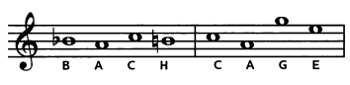Если использовать латинскую систему, в которой ноты обозначаются буквами от А до G, то с помощью масштабирования можно превратить тему ВАСН («Бах») в CAGE («Кейдж»).