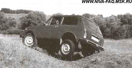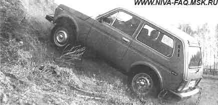 При движении по пересеченной местности вам придется на практике столкнуться с понятиями углов въезда, съезда, и "рампы". Короткие передний и задний свесы кузова "Нивы", как впрочем, и любого другого "внедорожника", определяют большие углы въезда и съезда, которые влияют на то, какой крутизны подъем можно начинать преодолевать без контакта с грунтом кузова или его элементов.
