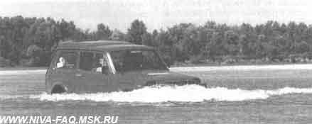 "Нива" при грамотном управлении способна преодолеть водные преграды глубиной 70 сантиметров и более. Хотя глубина преодолеваемого брода для любого автомобиля — величина относительная. Предполагается, что вездеход двигается по дну водоема с определенной "толщиной" воды. На практике твердое дно у тех водных препятствий, которые вам придется преодолевать вдали от дорог как правило отсутствует (исключение составляют затопленные, например, паводковыми водами, твердые дороги и мосты). Поэтому под глубиной брода следует иметь в виду не только "толщу" воды, но и углубление колес в вязкое дно, ямы и т. п.