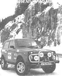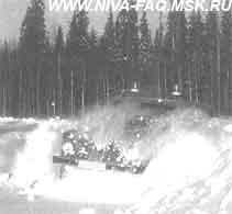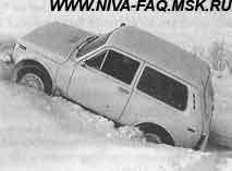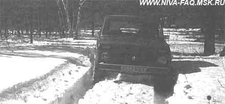 Вот несколько общих "снежных" рекомендаций. Пытаться поворачивать в снегу можно, если вы чувствуете, что "Нива" двигается уверенно и не снижает заданный темп. Но повороты должны быть плавными, как при движении по песку. Чем глубже снег, тем плавнее должен быть поворот. Если автомобиль не слушается руля и не хочет поворачивать, надо сбросить "газ". Добавление "газа" при движении, а снегу обычно приводит к увеличению радиуса. Если пришлось остановиться и тронуться вперед не удается, попробуете плавно сдать назад и набрать небольшой запас хода по проторенному следу. Не стоит пытаться тронуться с повернутыми передними колесами, так как автомобилю придется протаптывать четыре колеи, а не две, когда передние колеса стоят прямо.