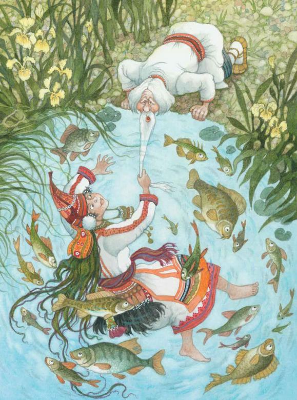 Жили-были старик со старухой. Не было у них ни детей, ни внуков. Ушёл однажды старик по лесам бродить. Три года ходил, потом домой собрался. Шёл он, шёл и очень пить захотел. Спустился старик к озеру, наклонился над водой и только сделал два глотка, как схватила его за бороду Ведява [1] . Крепко схватила – держит, не отпускает.