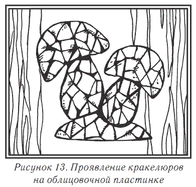 В результате этой манипуляции краска останется только в трещинках. Сам же рисунок снова приобретет белый или кремовый оттенок (рис. 13).