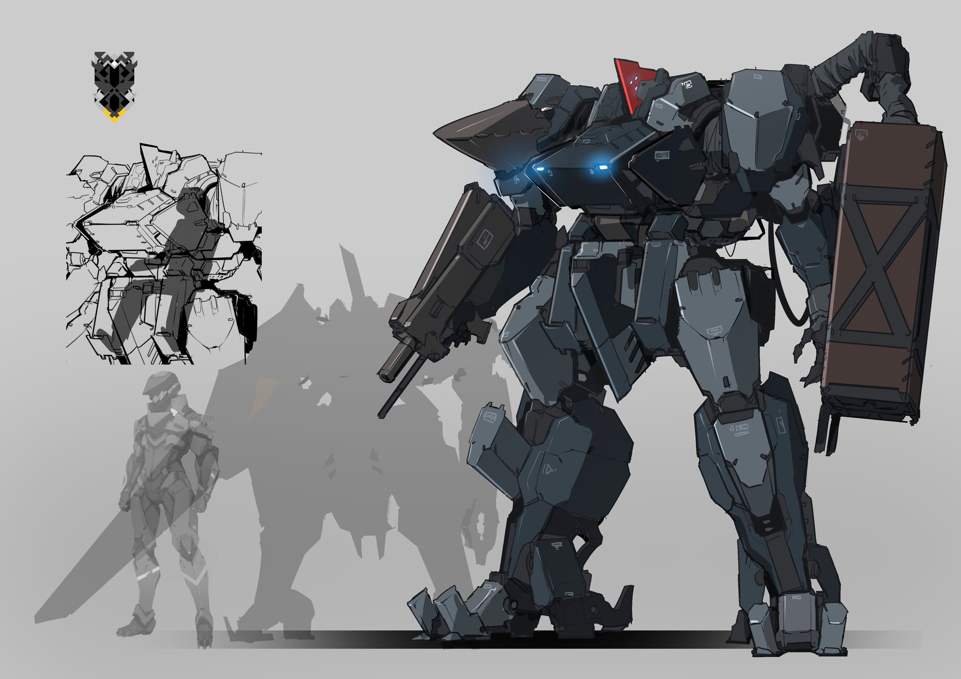 Это был силовой доспех, выглядящий как четырехметровый прямоходящий танк. Он, не беспокоясь о находящихся внутри, проделал огромную дыру в полу конференц-зала, чтобы прикрыть своим телом хозяев. В громоздких когтистых руках он держал встроенный в металл плазмомет, который сейчас смотрел в землю своим соплом.