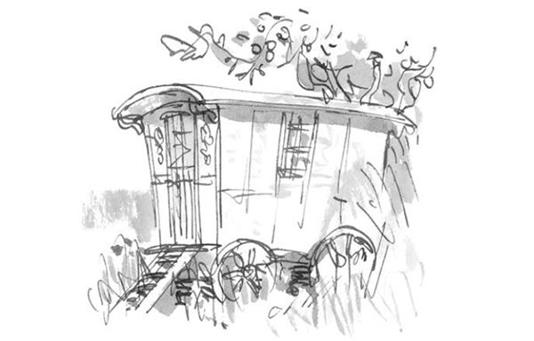 А в кибитке жили мы, и она была нам родным домом. Это была настоящая старая цыганская кибитка с большими колёсами, вся красиво разрисованная жёлтыми, красными и голубыми узорами. Папа говорил, ей лет сто пятьдесят, не меньше. Немало цыганских детишек, говорил он, родились и выросли в её деревянных стенах. Когда-то давно наша кибитка, запряжённая конём, прогромыхала, должно быть, тысячи миль по дорогам и тропинкам Англии. Но теперь её странствия были окончены, деревянные