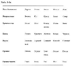 Пять Элементов не только представляют силы природы, но и обеспечивают руководящие принципы для физиологии, патологии, диагностики и терапии в традиционной китайской медицине. В человеческом теле внутренние органы делятся на две группы: пять Чжан, иньских, или плотных органов, и шесть Фу, янских, или пустых органов. Каждый из Инь- или Ян-органов идентифицируется с одним из элементов. Сердце (Инь) и тонкая кишка (Ян) ассоциируются с Огнем, селезенка (Инь) и желудок (Ян) – с Землей, легкие (Инь) и толстая кишка (Ян) – с Металлом, почки (Инь) и мочевой пузырь (Ян) – с Водой, печень (Инь) и желчный пузырь (Ян) – с Деревом (см. табл. 2-2а).