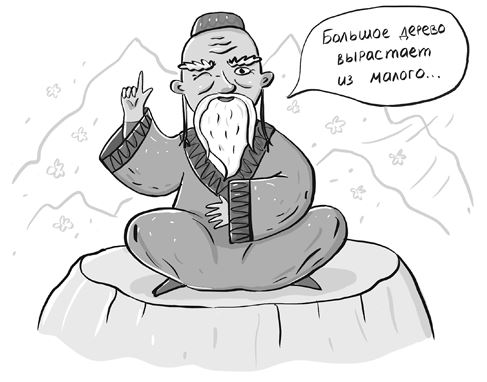 Большое дерево вырастает из малого, девятиэтажная башня начинает строиться из горстки земли, путешествие в тысячу ли начинается с одного шага.
