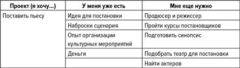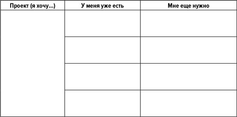 2. Давайте проанализируем. Какой столбец было легче заполнить? О чем это говорит? Если позиции в графе «Есть» набираются медленно и со скрипом, значит, вам не хватает ресурсов и времени для нового дела. Надо подумать, от чего сейчас можно отказаться, что перенести на другой срок и т. д. Если же трудности возникли с графой «Нужно», возможно, вам пока не хватает компетенций в деле, за которое вы взялись. Попробуйте вписать что-то вроде «изучить материалы, погуглить», «поговорить с профи», «пообщаться с друзьями, у которых есть опыт в деле, которое я собираюсь начать»…