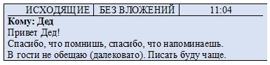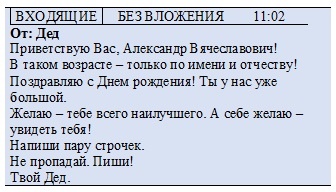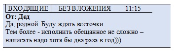 «Похоже, что Дед на меня обижается. Обязательно напишу или перезвоню ему сегодня. А сейчас нет времени. Не обижайся».
