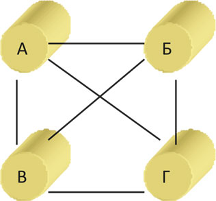 Часто возникает необходимость в координации деятельности, такая координация обеспечивается с помощью коммуникационной сети типа «Колесо», в которой имеется центральный субъект, облегчающий и ускоряющий процесс коммуникаций (рис. 2.12). Однако это не отдающий распоряжения администратор, а общепризнанный лидер, ведущий за собой остальных.