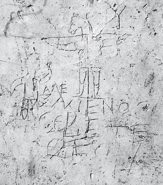 Но если для евреев распятие Мессии было скандалом, то для остальных народов оно было чистым безумием. Первые просвещенные ненавистники христианства охотно высмеивали саму мысль о поклонении распятому человеку. Об этом свидетельствует знаменитое Палатинское граффити в Риме, которое, как считают, создано между I и III веками нашей эры. На нем изображена фигура распятого с ослиной головой, а под ней стоит подпись: «Алексамен поклоняется своему богу».