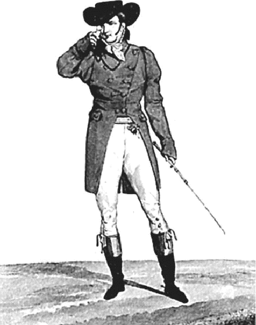 Графическая завершенность дендистских жестов возникала во многом благодаря умелому обращению с аксессуарами. Тросточкой можно было небрежно поигрывать на прогулке, но если предполагалась поездка верхом, требовалось виртуозно владеть искусством верховой езды – сидеть на лошади прямо, не выпуская из рук трость, держа ее вертикально перед собой, как пику.