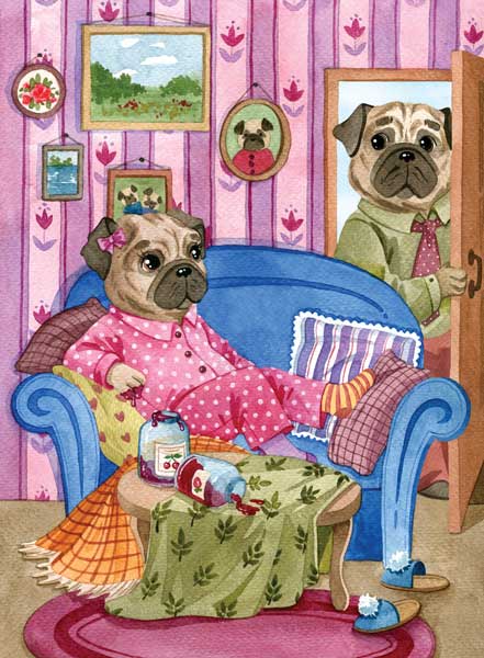 – Не знаю, – всхлипнула черная мопсиха, – ночью проснулась от того, что замерзла. Закуталась в одеяло, но теплее не стало. Решила надеть теплую пижамку, гляжу… а мой хвостик!