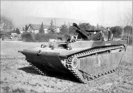 Плавающий транспортер LVT-4 («Буффало-4») британской армии, вооруженный 20-мм автоматической пушкой «Польстен».