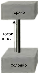 Рис. 4.4.Формулировка Второго Начала, данная Клаузиусом, утверждает, процессы, подобные этому, никогда не наблюдаются. При условии, что внешнее вмешательство отсутствует, никогда нельзя наблюдать, как энергия течет от холодного тела к горячему.