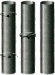 Рис. 8.13.Две струны, струна и антиструна, движущиеся вдоль свернутого измерения, встретятся и аннигилируют, давая возможность измерению развернуться. В теории струн существует указание на то, что струны имеют много шансов для встречи в трех измерениях, подобно точечным частицам в размерности один. Оставшиеся измерения пойманы, так что лишь три измерения разворачиваются, чтобы образовать размерность нашей знакомой Вселенной.
