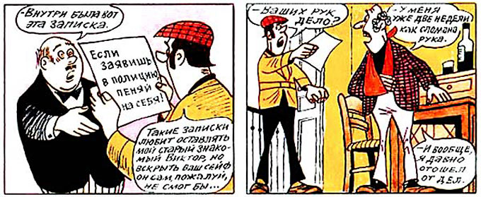 Придя в свою контору, месье Дюфрик обнаружил, что сейф, в котором хранились ценные бумаги взломан. Он сейчас же вызвал Людовика.
