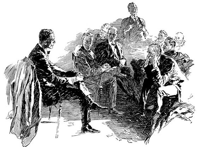 Комната, куда проводила горничная Финка, была обставлена со вкусом и блистала чистотой, которая достигается только ежедневной уборкой. Стены были заставлены стеллажами с книгами и папками. В углу размещалось бюро с множеством ящичков. Эдмонд Морби в белом жилете с крупными пуговицами из оникса восседал посреди кабинета за роскошным столом, покрытым зеленым сукном, просматривая какие-то документы. Его красноватой шее с двойным подбородком было не слишком-то удобно в стоячем снежно-белом воротничке, но бывший инспектор стоически терпел.