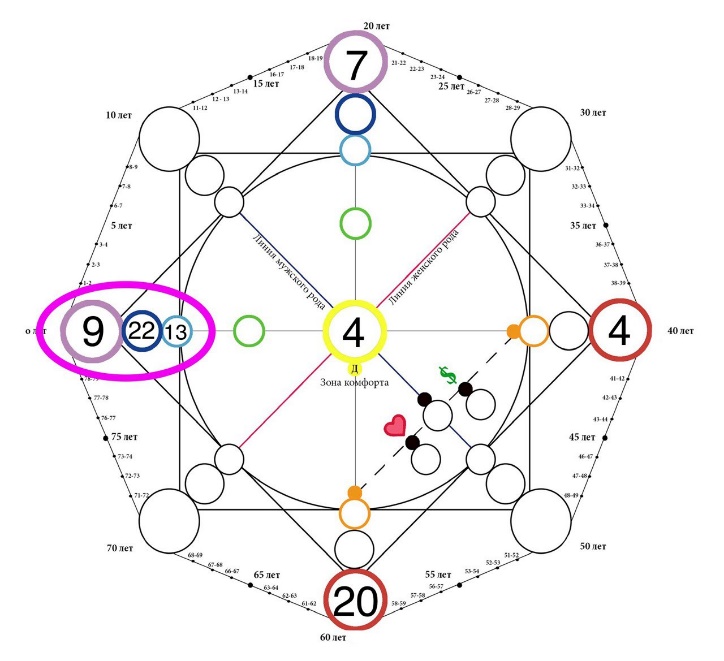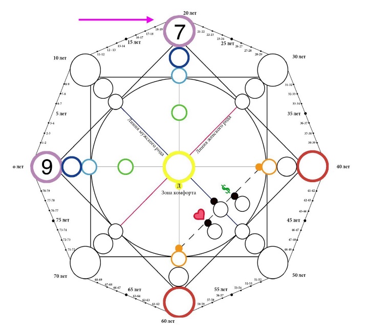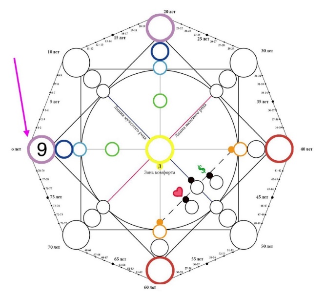 Таким образом энергия дня рождения будет 9. Вписываем это значение в точку А.