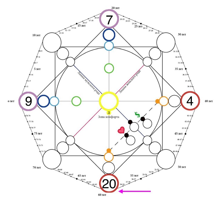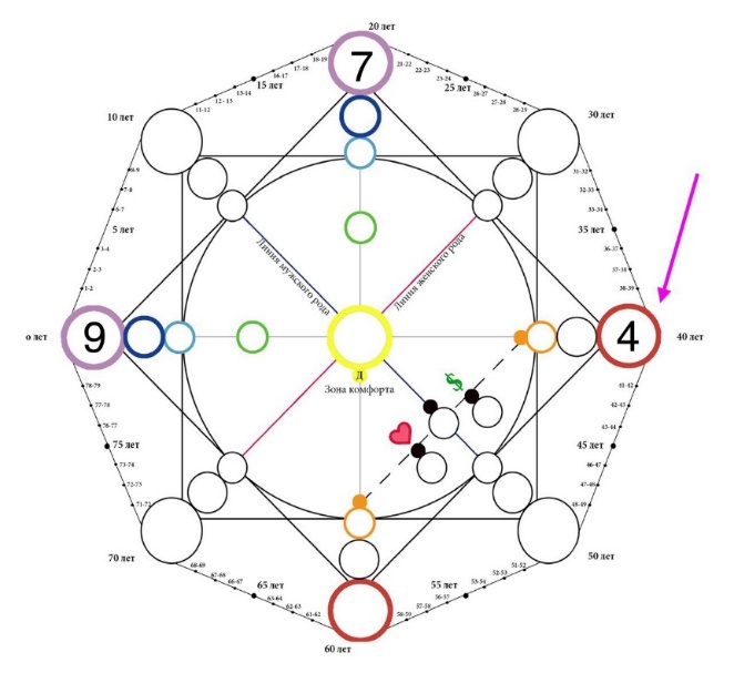 Эти точки показывают взаимоотношения внутри семьи, карму трех поколений, на что обратить внимание в воспитании ребенка, какие ошибки и сценарии могут передаваться из рода в род.
