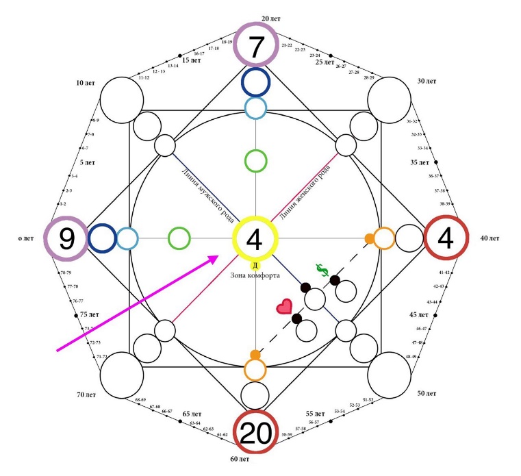 Таким образом энергия года рождения будет 4. Вписываем это значение в точку В.