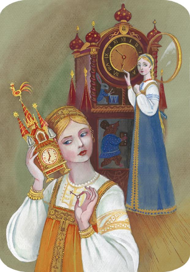 И отец её, честной купец, похвалил её за такие речи хорошие, и было положено, чтобы до срока ровно за час воротилась к зверю лесному, чуду морскому, дочь хорошая, пригожая, меньшая, любимая. А сёстрам то в досаду было, и задумали они дело хитрое, дело хитрое и недоброе: взяли они да все часы в доме целым часом назад поставили, и не ведал того честной купец и вся его прислуга верная, челядь дворовая.