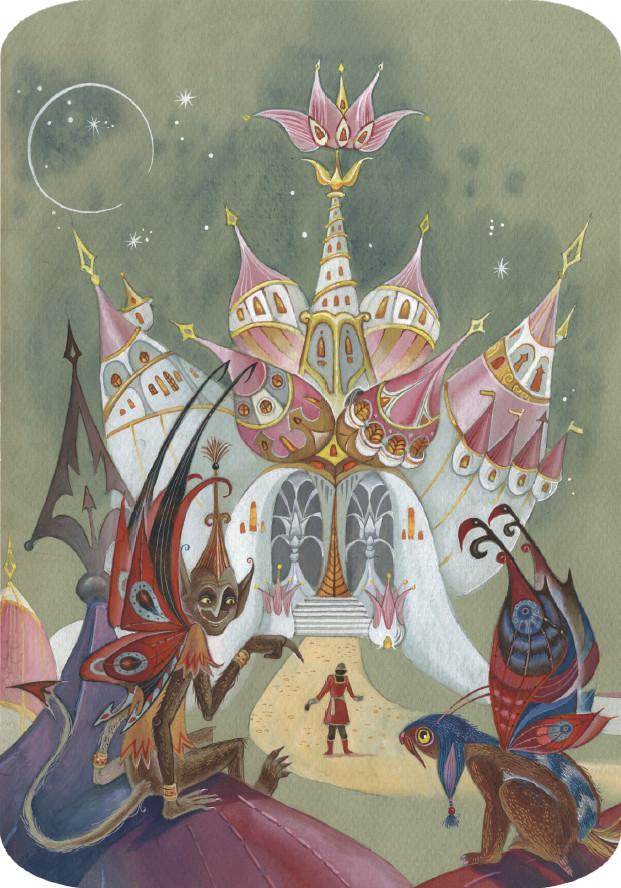 Выходит он под конец на поляну широкую, и посередь той поляны широкой стоит дом не дом, чертог не чертог, а дворец королевский или царский…