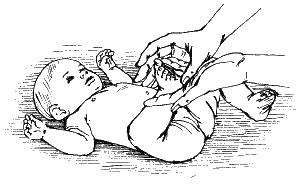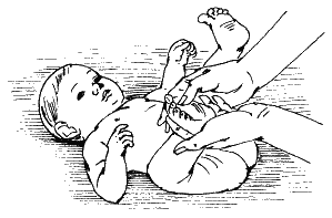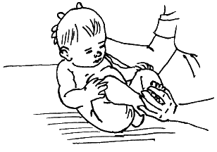 При этом свободной рукой нужно аккуратно придерживать ноги ребенка.