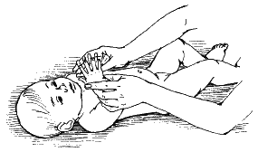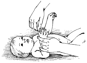 Разведение ног выполняют только после того, как будет достигнуто расслабление мышц с помощью мягких вибрационных движений. После этого между ног малыша нужно положить свернутую пеленку и фиксировать ее другой пеленкой или легкими штанишками. Описанные действия получили название «широкого пеленания», которое в профилактических целях можно проводить не только детям с неврологическими патологиями, но и здоровым. Упражнения для ног (разгибание и сгибание, топанье, «скользящие шаги» и пр.) проводят только при широком разведении бедер в стороны.