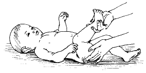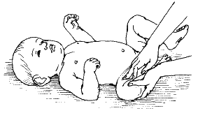 Если тонус приводящих мышц бедра повышен, малыш с трудом разводит ноги в стороны, а если взять его под мышки, он скрещивает ноги. В связи с этим, прежде чем приступить к упражнениям, нужно с помощью массажа расслабить сведенные мышцы.