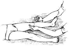 4. Задние поверхности бедер: поглаживание, нежное растирание, несильное разминание (валяние) и снова поглаживание. Если при сгибании коленного сустава возникают затруднения, применяйте больше поглаживаний в сочетании с вибрацией и потряхиванием задних мышц голеней и бедер.