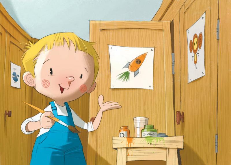 В раздевалке шапочки,Куртки и ботинки.А на наших шкафчикахРазные картинки.Трактор у Бориса,Пальма у Варвары.А у ВасилисыЖёлтая гитара.У Степана санки,Кит у Тимофея.У сестры ОксанкиСказочная фея.С чебурашкой Алла,С вертолётом Вовка,Ну а мне досталасьКрасная морковка.Пароход у Ромки,Зебра у Маринки…Все смеются громкоНад моей картинкой.Красками я ловкоИсправляю это.Больше нет морковки,У меня – РАКЕТА!
