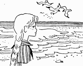 Антошка замерла в восхищении. Море лежало прямо под ногами спокойное, как туго натянутый серовато-голубой атлас, и только кое-где слегка морщилось. Такой же светло-голубой полог неба был натянут над морем.
