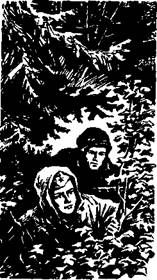 Молча шли они по узкому ходу, а кругом стояла непроглядная темнота, посвистывал ветер, поскрипывали, будто стонали, могучие стволы столетних сосен. Вот и первая траншея. Здесь шире, просторнее. Застыли, положив винтовки на бруствер, солдаты Богарникова, стоят, покуривая в рукав, разведчики в белых маскировочных комбинезонах, у каждого рядом лыжи. Вяльцев задержался перед одним из них, положил ему на плечо руку.