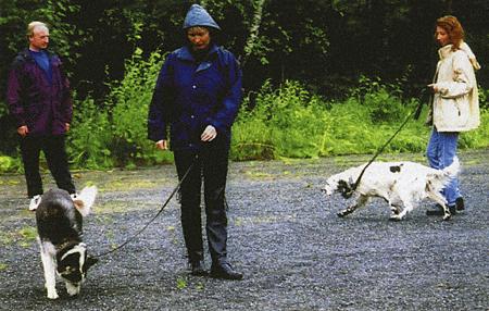 Очень важно, чтобы вы и ваша собака научились ходить на поводке без натяжения и рывков. Тогда во время прогулки рывки за поводок не будут создавать у собаки негативные ассоциации по отношению к окружающим объектам. Собака будет оставаться спокойной, и вы сможете по сигналам примирения определить, какие собаки или объекты вызывают у нее неприятные ощущения.
