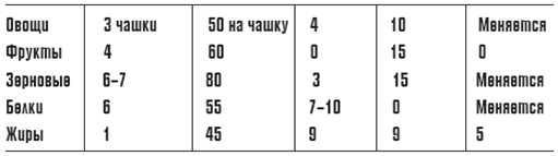 Если окажется, что вы переборщили и вам совсем не хватает сил, появилась раздражительность, расстроился сон, добавьте в дневной план одно «лишнее» блюдо. Если энергии все равно не хватает, прибавьте еще одно, но только уже в другую пищевую группу. Общее правило такое: если и прибавлять блюда, то лишь по одному в конкретную пищевую группу.