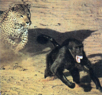Если павиан и оказывается на открытом пространстве, ему уже не на что надеяться. Бежать больше некуда, леопард совсем рядом, и павиан с отчаянным воплем поворачивается навстречу врагу.