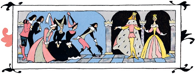 Сын мельника был и так недурён собой, а в королевском наряде стал и вовсе красавцем. Юная принцесса, увидев его, сразу это заметила. А когда он, поклонившись, взглянул на неё – восхищённо и вместе с тем почтительно – её щёки порозовели, а сердечко забилось.
