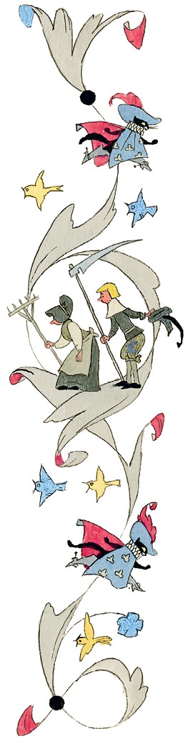– Эй, косари! – крикнул он. – Имейте в виду: если вы не подтвердите перед королём, что всеми этими лугами владеет маркиз де Карабас, вас всех повесят и четвертуют!