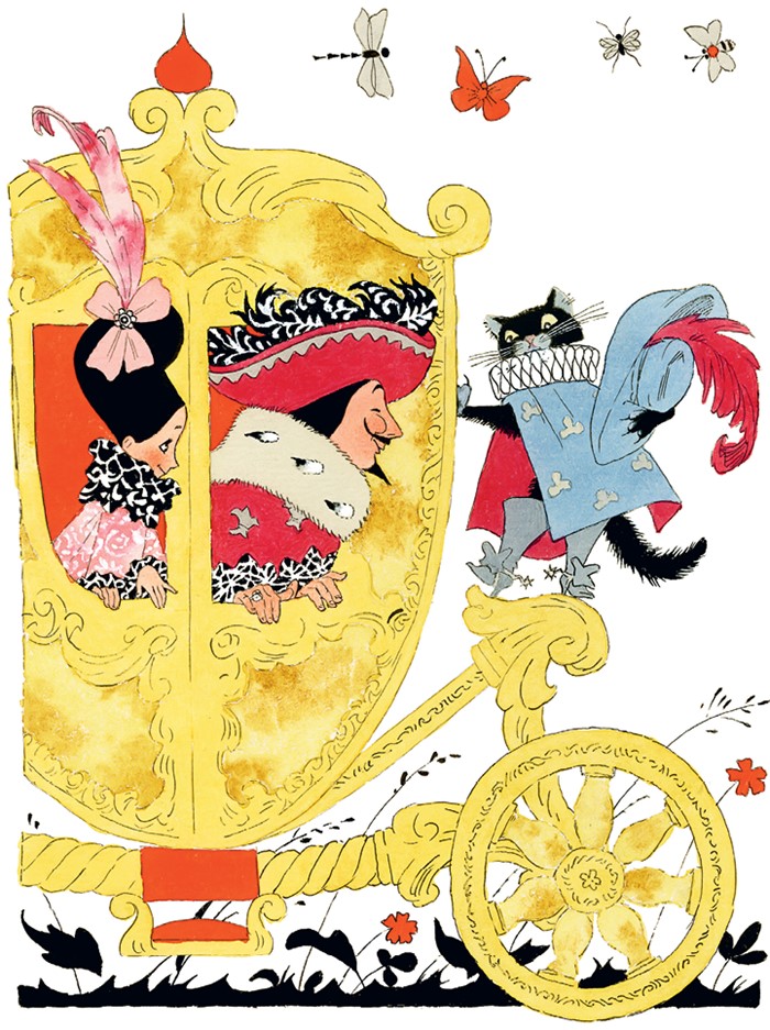 На её отца знатный юноша тоже произвёл приятное впечатление. Его величество решил не оставлять свои заботы о нём и пригласил маркиза в свой экипаж, чтобы вместе продолжить прогулку. Тот с благодарностью принял приглашение, а кот в сапогах, видя, что всё идёт как по маслу, пустился бежать впереди кареты.