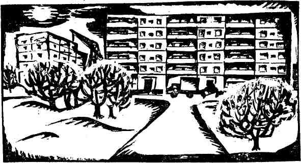 Закрываю дверь, обитую, как диван, войлоком и коричневым кожзаменителем. Гудение конвейера становится тише, но не исчезает совсем, потому что над дверьми узкая рама в одно стекло. Похоже, что рама дребезжит, жалостливо, тонко. Впрочем, может, я ошибаюсь. У меня с утра болит голова, и в ушах стоит негромкий звон, словно мне, как козе, привязали на шею